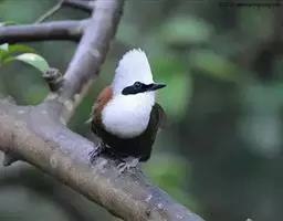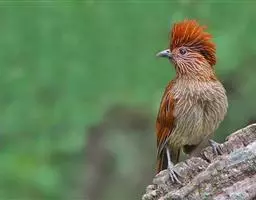 褐头凤鹛小型鸟类,体长12~13厘米。头顶有可竖立的红褐色羽冠,头侧、枕、颊、喉和下体白色,…