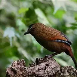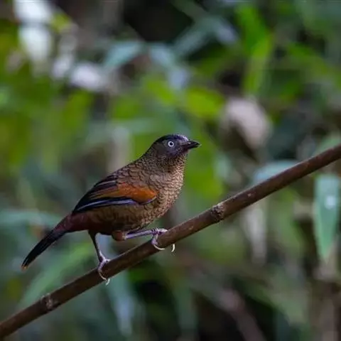 蓝翅噪鹛:噪鹛科、彩翼噪鹛属动物。中型鸟类,体长22-25厘米。上体棕橄榄褐色密被黑色鳞状斑,…