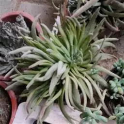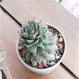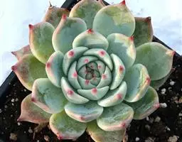 大和锦是景天科拟石莲花属的多肉植物。肉质叶排成紧密的莲座状,广卵形至散三角卵形,背面突起呈龙骨状,…