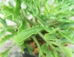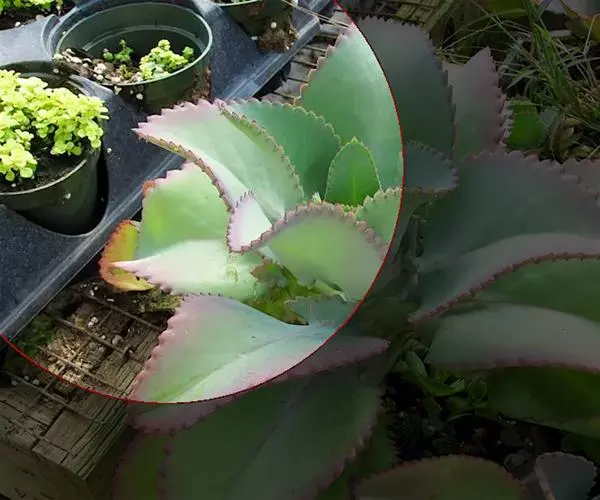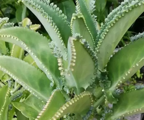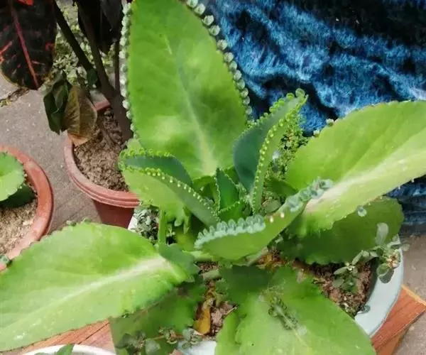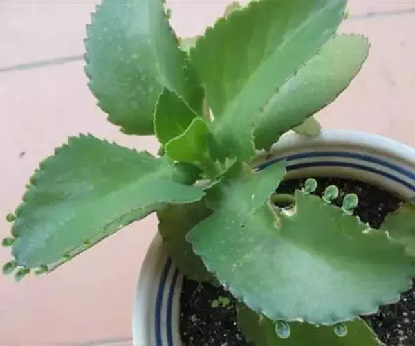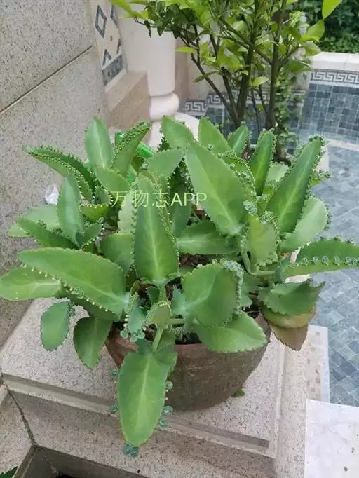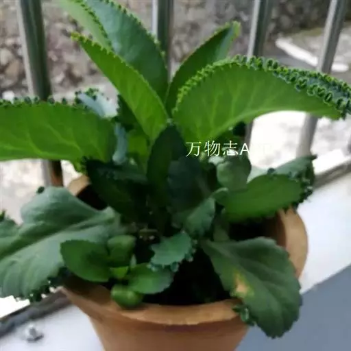 宽叶落地生根是最常见的多浆植物。其叶片肥厚多汁,边缘长出整齐美观的不定芽,形似一群小蝴蝶,飞落于地,立即扎根繁育子孙后代,颇有奇趣。用于盆栽,是窗台绿化的绿化的好材料,点缀书房和客室也具雅趣。