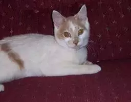 土耳其梵猫,英文名:Turkish Van,原产土耳其国,长型而结实体型,中长度长毛,被毛白而发亮,毛质如同丝绸般十分光滑。全身除头耳部和尾部有乳黄色或浅褐色的斑纹外,没有一根杂毛,外表极为美丽和可爱。头部呈宽广的楔形;耳朵小;眼睛为大型椭圆形。性格聪明、机敏、活泼、喜欢玩耍、攀爬。叫声甜美悦耳,对人友善,是极适宜家庭饲养的优良品种。土耳其梵猫是土耳其国宝,起源于土耳其的梵湖地区,是由土耳其安哥拉猫突变而成的,严格说是安哥拉猫的一个品系。