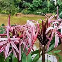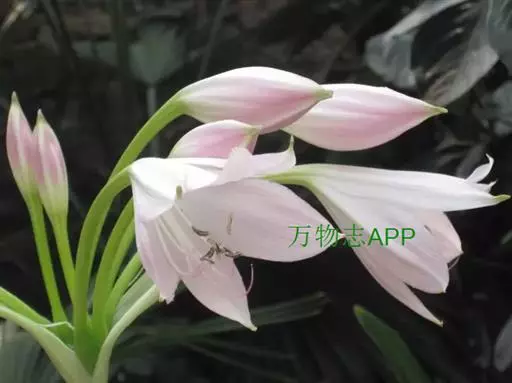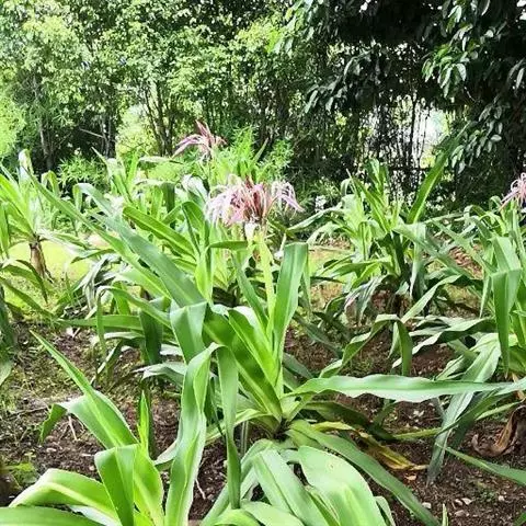 香殊兰学名穆氏文殊兰(Crinum moorei Hook. f),石蒜科文殊兰属植物。多年生球根草本花卉,叶片宽大肥厚,常年浓绿,花葶一年四季均直立生出,一般有花10朵—24朵,呈伞形聚生于花葶顶端,中间紫红,两侧粉红,蒴果,种子大,绿色,盛花期在7月。穆氏文殊兰性喜温暖、湿润,略耐阴,耐盐碱,不耐寒,生长适温15~20℃。穆氏文殊兰花叶并美,具有较高的观赏价值,既可作园林景区、校园、机关的绿地、住宅小区的草坪的点缀品,又可作庭院装饰花卉。
