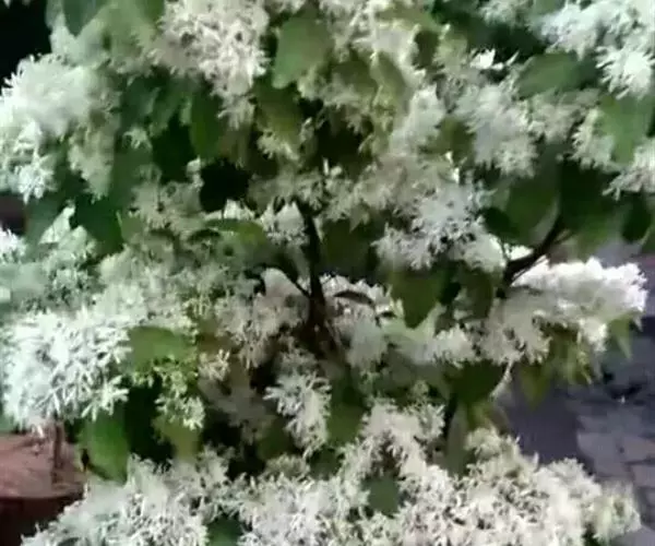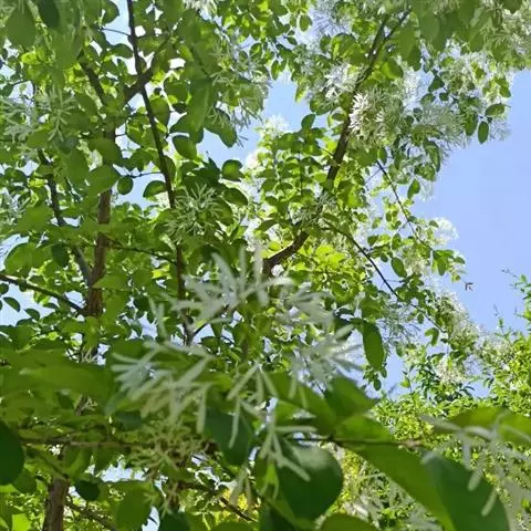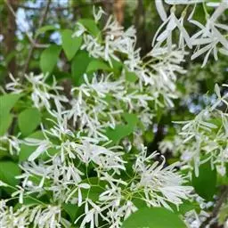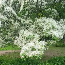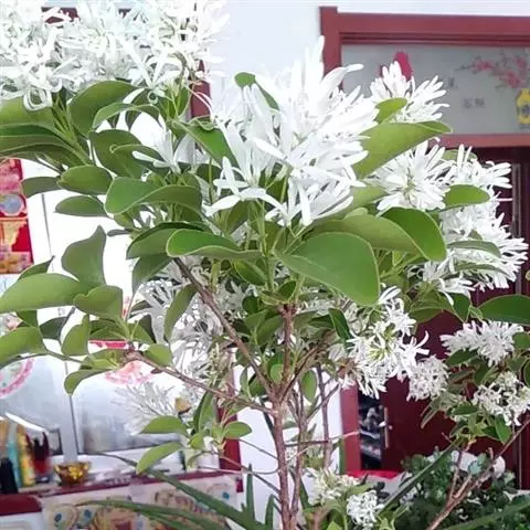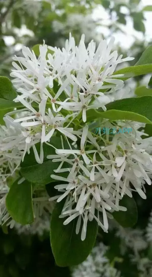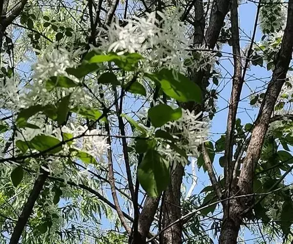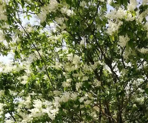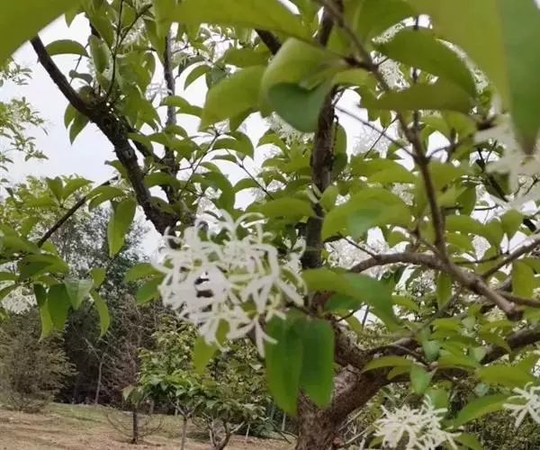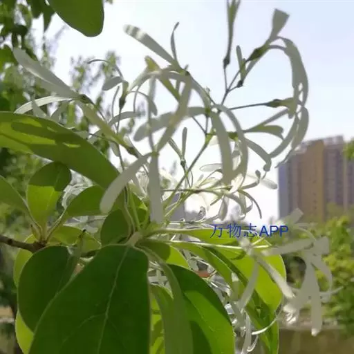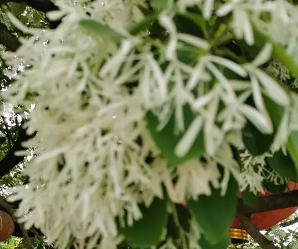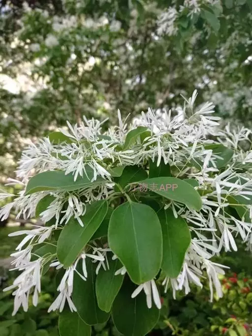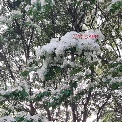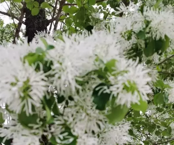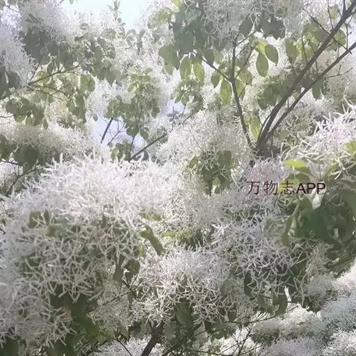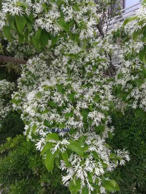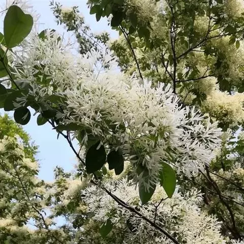流苏树(学名:Chionanthus retusus Lindl.et Paxt.):是木犀科流苏树属的植物,是落叶灌木或小乔木,树形高大优美,枝叶茂盛,初夏满树白花,如覆霜盖雪,清丽宜人。秋季结果,核果椭圆形,蓝黑色。近看,流苏树的叶为单叶对生,叶片椭圆形或长圆形,全缘,近革质。雌雄异株,圆锥花序生于侧枝顶端;花冠白色,4深裂,裂片线状倒披针形,雄花雄蕊2,雌花柱头2裂。花期3-6月,果期6-11月。