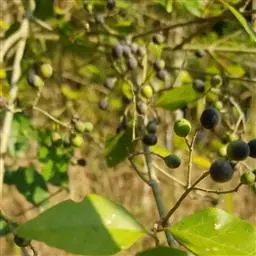 果椭圆形,被白粉,长1-1.5厘米,径6-10毫米,呈蓝黑色或黑色。花期3-6月,果期6-11月。