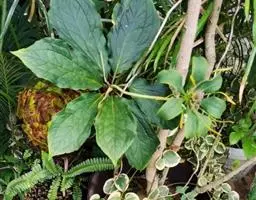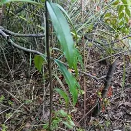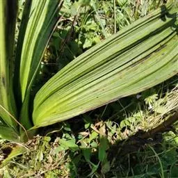 植株高60-100(-160)厘米;茎较纤细,基部稍粗,连叶鞘直径约1厘米,被棕褐色、有网眼的纤维网。叶折扇状,长矩圆状披针形至狭长矩圆形,长约30厘米,宽1-4(-8)厘米,两面无毛,先端长渐尖或渐尖,基部收狭为柄,叶柄长达10厘米。