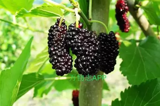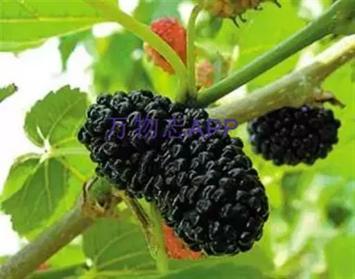 桑椹嫩时色青,味酸,老熟时色紫黑,多汁,味甜。中医学认为桑椹补益肝肾,滋阴养血,息风,具有主治心悸失眠、头晕目眩、耳鸣、便秘盗汗、瘰疬、关节不利等病症。 桑葚-原植物