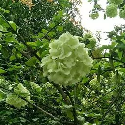 绣球荚蒾,五福花科荚蒾属落叶灌木,高可达3米,树冠球形;幼枝有垢屑状星状毛,老枝粗壮,具皮孔,…