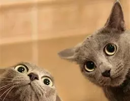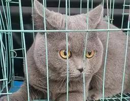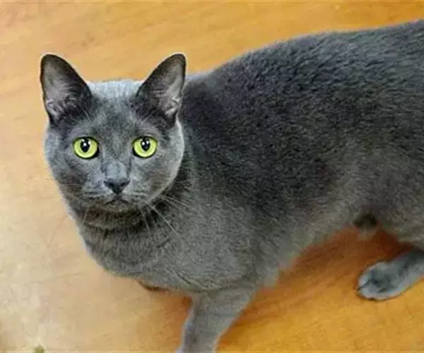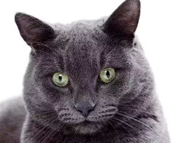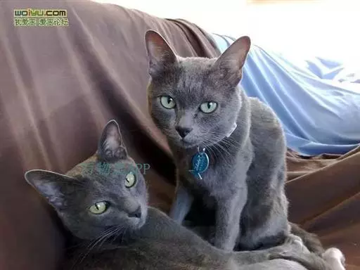 蓝猫:(毛发独特,质地似海豹皮,颜色应是中等深度的纯蓝色,泛出银色光泽,鼻子和掌垫也是蓝色,但幼猫除外,杏仁状眼镜应是非翠绿色。