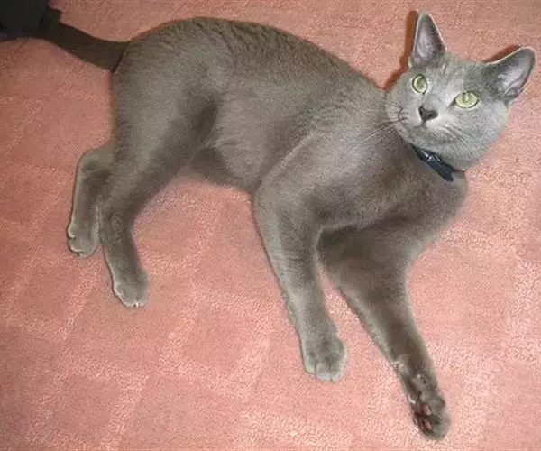 毛可抵御严寒,有灰色、蓝灰色,看上去散发着水貂皮一样的银灰光泽,故称俄罗斯蓝猫。