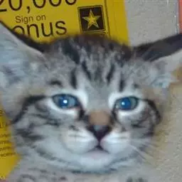 眼睛:大,间距大,杏仁型,微微倾斜。颜色,生动的绿色,小猫中的眼睛从黄到绿,最终的颜色到1岁时才能定型。