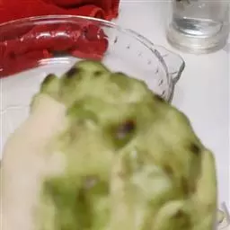 5. 用虎口挤出丸子的形状:把肉馅入在左手心,然后从虎口处挤出丸子的造型。