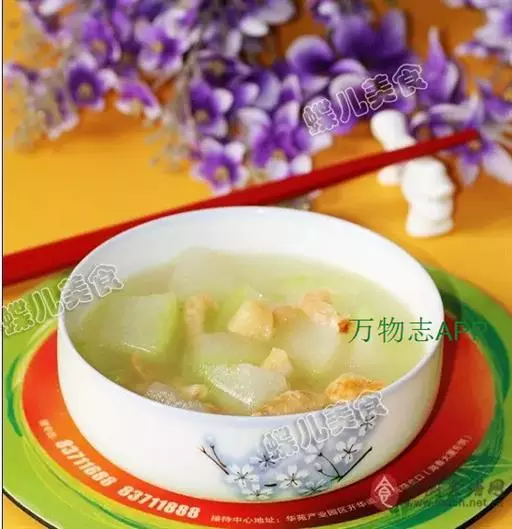 冬瓜汤流行于我国江南地区及北部,简单易做,是百姓日常食用的一种汤羹,可配米饭、包子等食用。