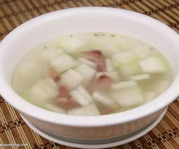 冬瓜汤是以冬瓜为主要食材的家常汤菜,制作原料主要有冬瓜、花椒、火麻油等,营养价值丰富,口味清新、价廉物美。