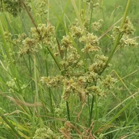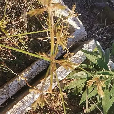 香附子(学名:Cyperus rotundus L.)是莎草科、莎草属植物。匍匐根状茎长,具椭圆形块茎。秆稍细弱,高15-95厘米,锐三稜形,平滑,基部呈块茎状。叶较多,短于秆,宽2-5毫米。叶状苞片2-3(-5) 枚,常长于花序,或有时短于花序;小穗斜展开,线形。小坚果长圆状倒卵形,具细点。花果期5-11月。