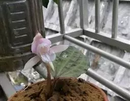 长叶山兰 长叶山兰的假鳞茎椭圆形至近球形,长1-2.5厘米,直径1-2厘米,有2-3节,外被撕裂成纤维状的鞘。叶2枚,偶有1枚,生于假鳞茎顶端,线状披针形或线形,长20-28厘米,宽0.8-1.8厘米,纸质,先端渐尖,基部收狭成柄,有关节,关节下方由叶柄套迭成假茎状,长3-5厘米。