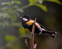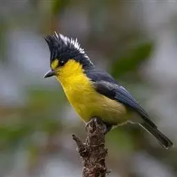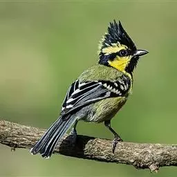 台湾黄山雀体长约13厘米。头顶至后颈黑色,有一长的黑色羽冠,羽冠末端和后颈中央白色。背苍绿色,…