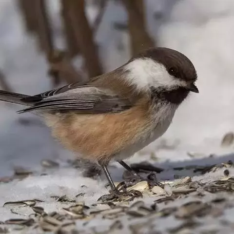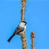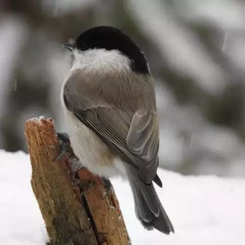 褐头山雀(学名:Poecile montanus):共有14个亚种,是一种小型的山雀。头顶及颏褐黑,上体褐灰,颊白,颏和喉黑色,下体近白,腹部棕色,两胁皮黄,无翼斑或项纹。与沼泽山雀易混淆,但一般具浅色翼纹,黑色顶冠较大而少光泽,头显比例较大。