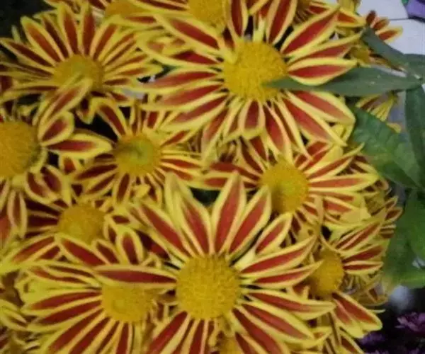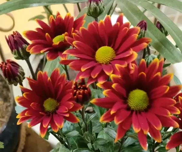 头状花序单生,具长总梗,花径7-12厘米,内含舌状花和管状花两种,舌状花单轮或1-3轮,花色丰富多彩,有白、黄、橙红等色,花瓣有光泽,部分具有条纹,花心处多有黑色、褐色或白色的眼斑;株型高矮不一,有丛生和蔓生两种;花期5-10月。