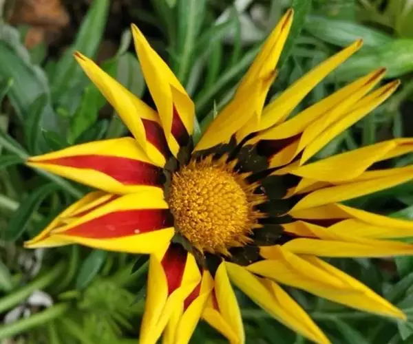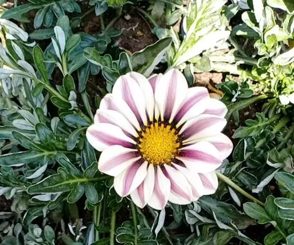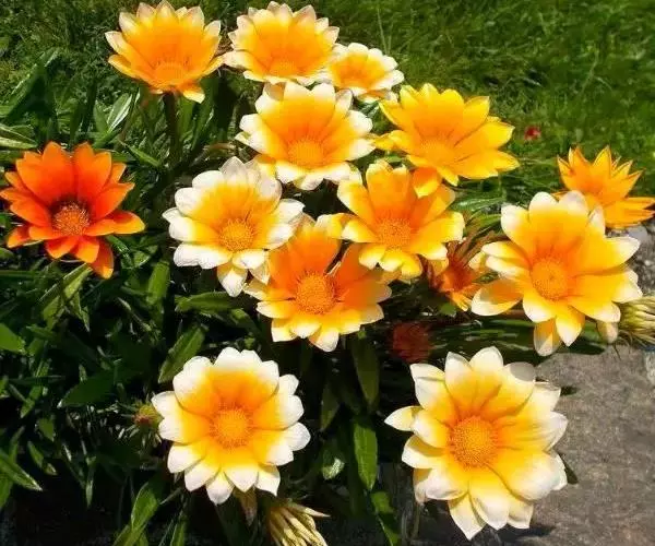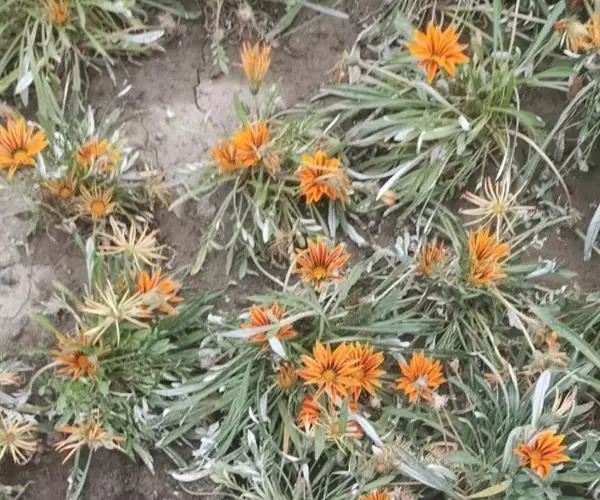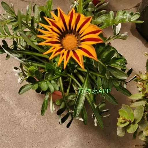 勋章菊(学名:Gazania rigens Moench)是菊科,勋章菊属多年生草本植物,株高可达40厘米,叶由根际丛生,叶片披针形或倒卵状披针形,叶背密被白毛,叶形丰富。头状花序单生,舌状花和管状花两种,花色丰富多彩,有白、黄、橙红等色,花瓣有光泽,花心处多有黑色、褐色5-10月开花。