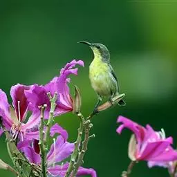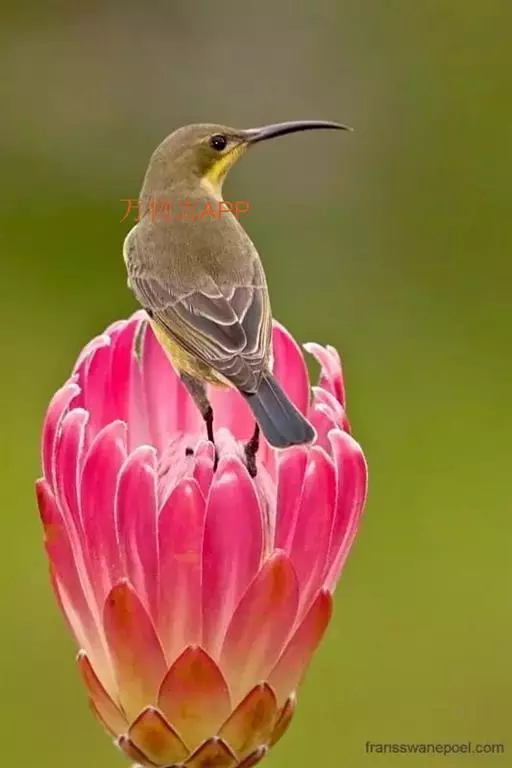 纹背捕蛛鸟:为太阳鸟科捕蛛鸟属的鸟类。是太阳鸟科中体型较大的一种,体重25-45克,…