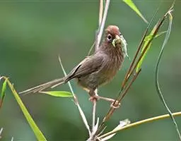 繁殖期3-5月。营巢于阔叶林树上。巢呈两头尖的长梭形,主要由细草、枯叶、花、苔藓、植物纤维、昆虫分泌物秘排泄物和蜘蛛网等编织而成;巢口位于巢侧面中部,其上有檐状突起遮挡巢口,巢内垫有松软的木棉絮衬垫;巢悬吊于一棵小树的细枝条上,由于巢外面蛛丝网附有一些枯叶和茧状物,使巢就像悬垂下来的一串枯叶,被很好的隐匿于浓密的枯叶丛中,不易发现;巢距地高1.7米,巢长34.2米,宽4.3米,出入口直径2.2厘米×2.8厘米;每窝产卵3枚左右,卵呈梨形,暗灰色、缀有棕褐色斑和稀疏的点状斑,钝端更具一褐色环,卵在大小平均为15.2毫米×11.7毫米,重0.8克。