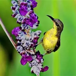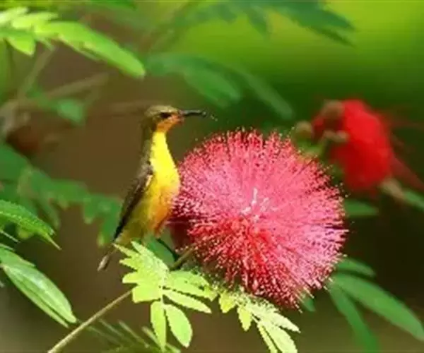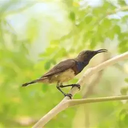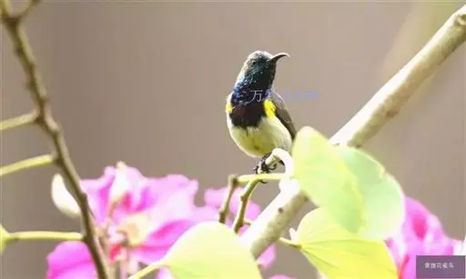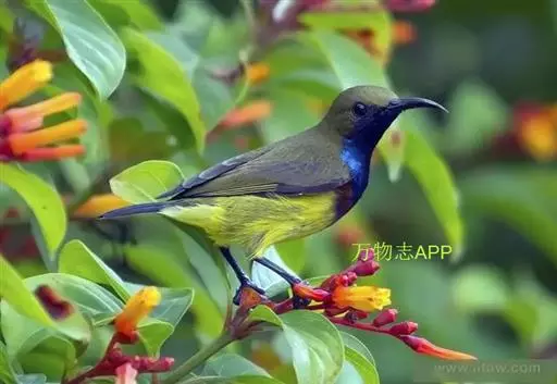黑胸太阳鸟:小型鸟类,体长9-15厘米。嘴细长而向下曲。雄鸟中央尾羽特长,尾呈楔形,…