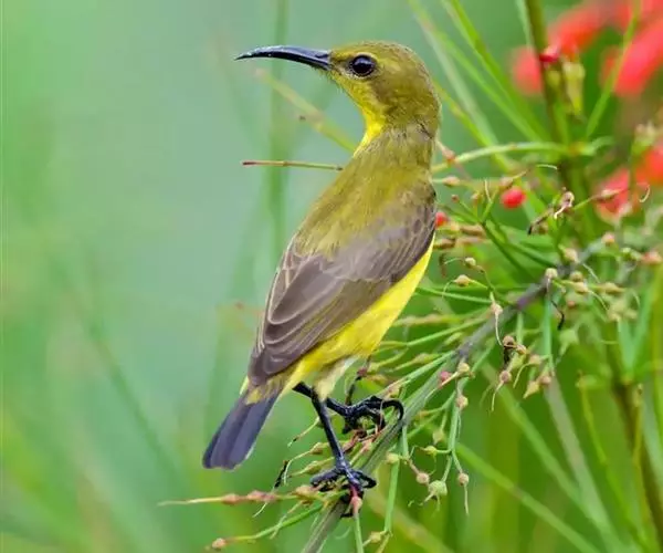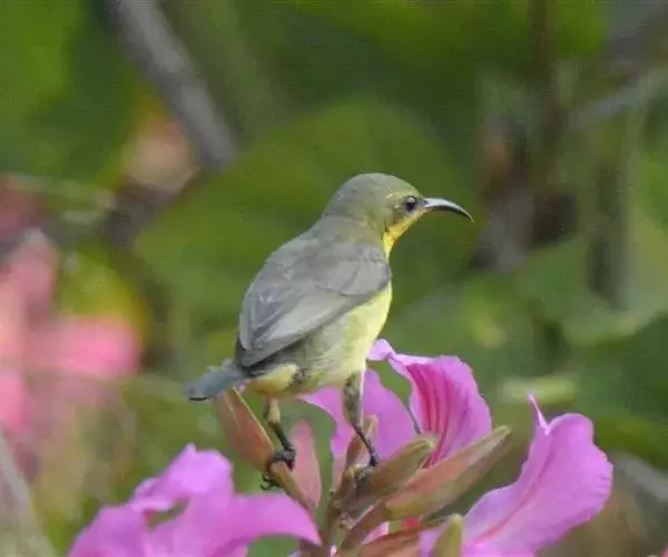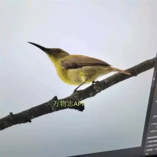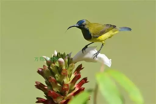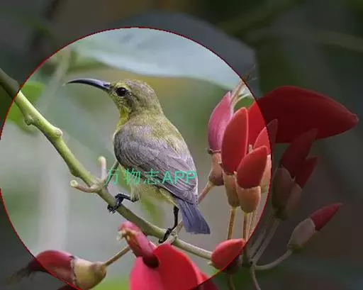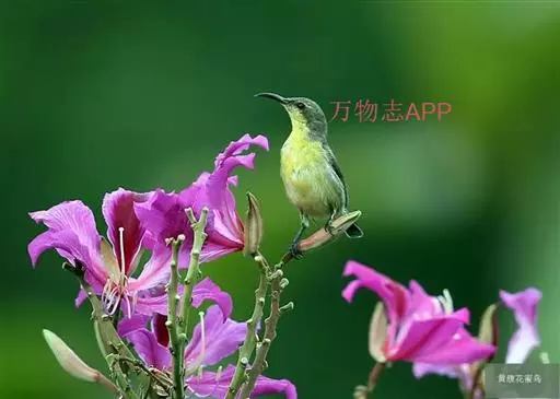 叉尾太阳鸟,雀形目太阳鸟科太阳鸟属留鸟;为小型鸟类,雄鸟头顶辉蓝绿色,上体橄榄绿色,腰明黄色,…
