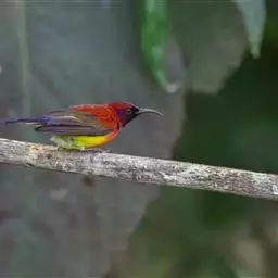 火尾太阳鸟为太阳鸟科太阳鸟属的鸟类。体长20厘米,色彩艳丽。雄鸟红色,具形长的艳猩红色中央尾羽。…