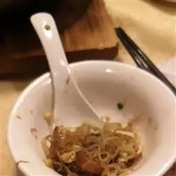 酥: 炼好的肉馅子,色泽金黄,红酥不板,一颗颗,一粒粒,入口就酥,沾牙就化。