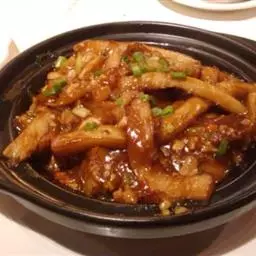 麻婆豆腐(拼音:má pó dòu fǔ;英文:sauteed tofu in hot and spicy sauce),是四川省传统名菜之一,属于川菜。主要原料为配料和豆腐,材料主要有豆腐、牛肉末(也可以用猪肉)、辣椒和花椒等。麻来自花椒,辣来自辣椒,这道菜突出了川菜“麻辣”的特点。其口味独特,口感顺滑。