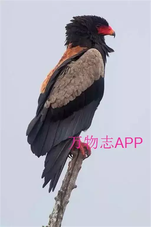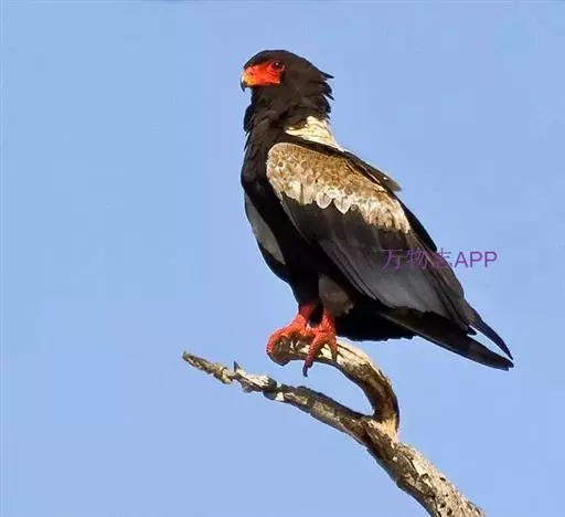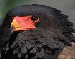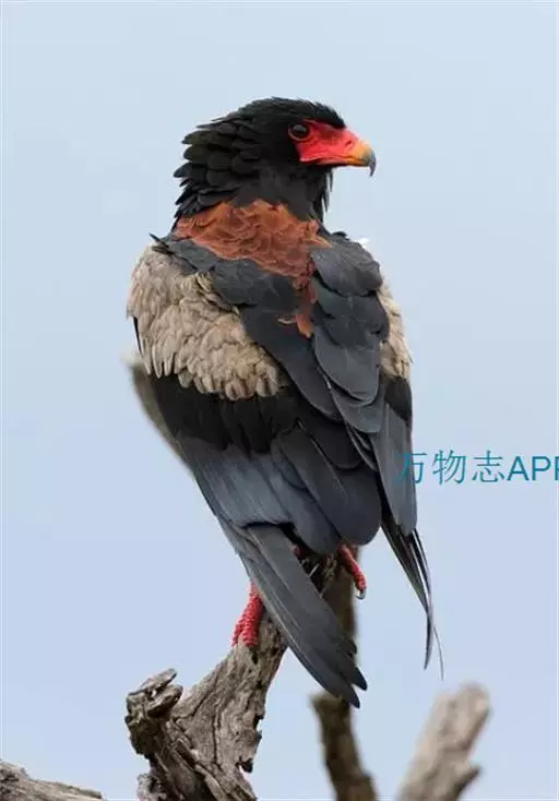 短尾雕(学名:Terathopius ecaudatus)是中等体型的鹰,短尾雕属下的唯一种,体长约70厘米,短尾巴长8-10厘米。头、颈和腹部有黑色金属光泽。背赤褐色。肩浅白至红褐色;脸红色裸露。脚强壮,橘红色。尾长仅10厘米(幼鸟尾较长)。翅上黑下白,长而尖,极宽。头部因有短而丰满的冠而显得大。