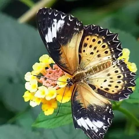 野外成虫多活动于林间空地、林缘向阳开阔地带,有时也在平原地区寻找蜜源植物。喜访马缨丹花,有时也取食发酵水果汁液、甚至动物粪便。在产卵园内,红色、橙色和黄色等颜色的花对成虫最有吸引力,铺有红布的喂食盘能吸引大量成虫取食。静止取食时翅膀大多合拢,偶而将翅膀展开。飞行低缓,休息时常停栖在低矮灌丛上,翅膀合拢,但上午有展开翅膀晒太阳的习性。雌成虫产卵前围绕寄主植株下部长时间飞行,寻找适宜的产卵位置。如无惊扰,雌蝶一天内只产一次卵。卵大多聚产在寄主卷须、叶片反面、嫩叶和嫩枝上,偶尔也产在叶片正面和嫩芽上,卵粒呈片状或串状分布,每片或串12~134粒卵。每产下数粒卵后,成虫即向前轻微移动位置。卵块中卵粒的数量与雌成虫产卵中有无惊扰及成虫日龄有关。求偶行为属典型的“巡游型”,雄成虫对于地面已死亡的雌成虫也感兴趣,未发现其有明显的领域性。交配发生在晴天上午,交配场所多在植物叶片下等隐蔽处,有时也在产卵园壁上。交配时两成虫翅膀合拢、竖立背面,呈“一”字排列。受到惊扰时,雄成虫带着雌成虫离去。