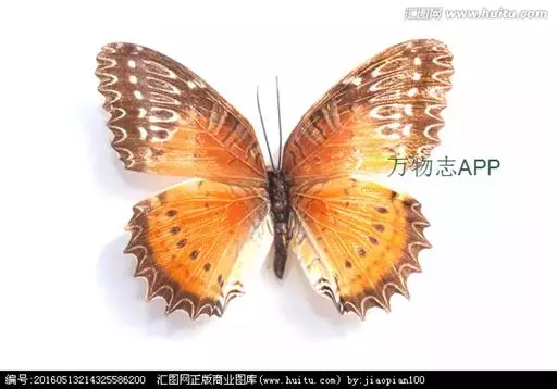 雄蝶翅正面橘红色,两翅具黑色锯状外缘。前翅中室内有几条黑色横线,中室端有2个小白斑,中域有1列“V”字形白色斑(4—5个),其外有1列白斑,黑色外缘带上具白色“(”形斑列。雌翅色淡,有的呈灰色或淡绿色。翅反面黄褐色或橙黄色斑纹特殊,两翅有淡色中横带及后中横带,其间有橄榄形黑色环列,每个环外侧有2个小黑点;前翅中室内有褐色和白色横带,其间有黑色细条纹。
