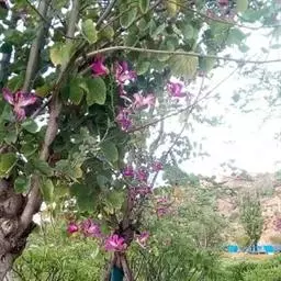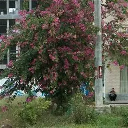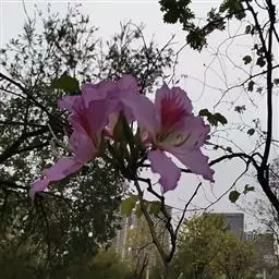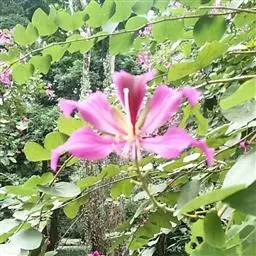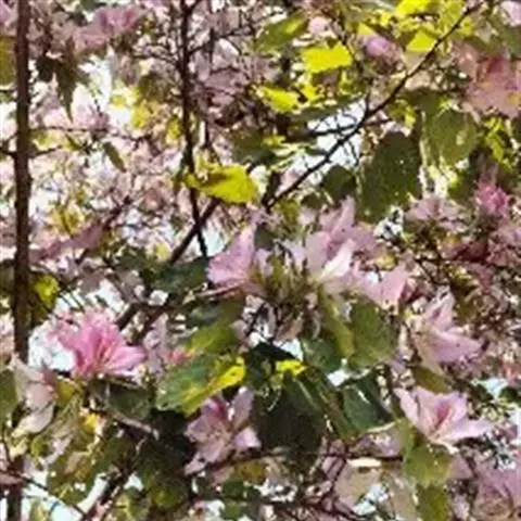 洋紫荆:落叶乔木;树皮暗褐色,近光滑;幼嫩部分常被灰色短柔毛;枝广展,硬而稍呈之字曲折,无毛。叶近…