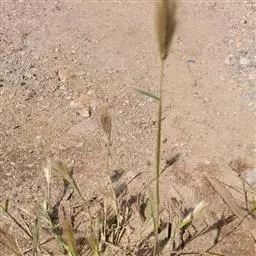 圆锥花序,长30-50厘米,分枝多数簇生,上升,果期开展;雄小穗长10-15毫米,两侧压扁,着生于花序下部或分枝之上部,带紫色,外稃具5脉,顶端渐尖具小尖头,内稃具3脉,中脉成脊,具毛,雄蕊6枚,花药长5-10毫米;雌小穗圆筒形,长18-25毫米,宽1.5-2毫米,着生于花序上部和分枝下方与主轴贴生处,外稃之5脉粗糙,芒长20-30毫米,内稃具3脉。颖果圆柱形,长约12毫米,胚小形,为果体之1/8。