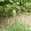 菰(学名:Zizania latifolia (Griseb. ) Stapf)禾本科、菰属多年生浅水草本,具匍匐根状茎。秆高大直立,高1-2米。叶舌膜质,长约1.5厘米,顶端尖;叶片扁平宽大,长50-90厘米,宽15-30毫米。圆锥花序长30-50厘米,分枝多数簇生,上升,果期开展。颖果圆柱形,长约12毫米,胚小形,为果体之1/8。