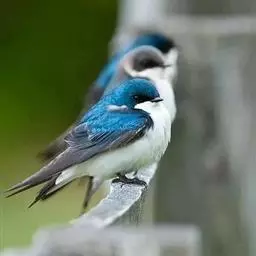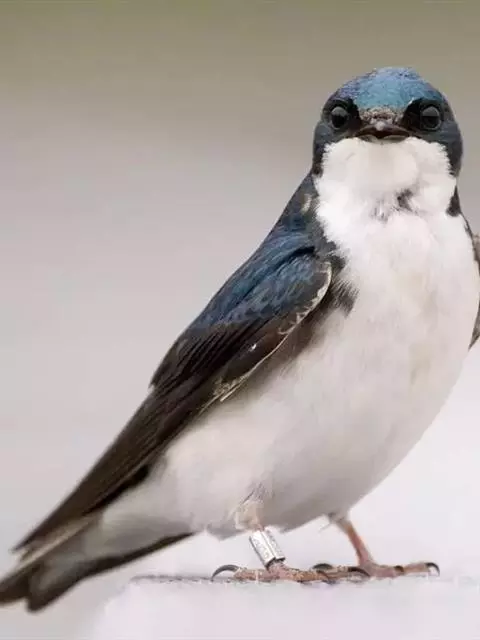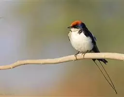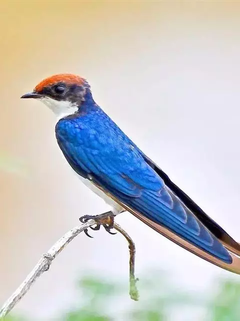线尾燕,腹部接近纯白色,背部则为深紫色,头部的羽毛是栗色的。