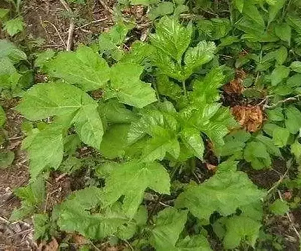 多年生草本,高1-2米。根圆锥形、粗大,多分歧,灰棕色。茎直立,有棱槽,上部开展分枝。叶有柄,长10-30厘米;叶片轮廓广卵形,薄膜质,三出式分裂,裂片广卵形至圆形、心形、不规则的3-5裂,长10-20厘米,宽7-18厘米,裂片边缘具粗大的锯齿,尖锐至长尖,小叶柄长3-8厘米;茎上部叶有显著宽展的叶鞘。