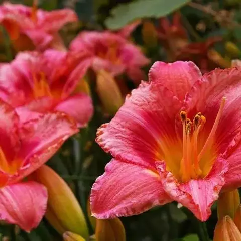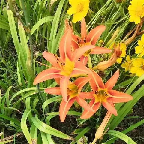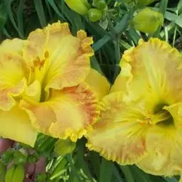 金娃娃萱草:是萱草的人工栽培的园艺品种。地下具根状茎和肉质肥大的纺锤状块根。叶基生,条形,排成两列,…
