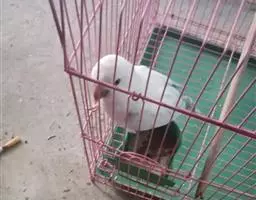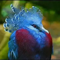 虹膜的外圈为粉红色至绯红色,内圈为蓝色,眼周的裸露皮肤紫蓝色。嘴呈淡蓝绿色,先端黄色。脚深红色,爪角褐色。