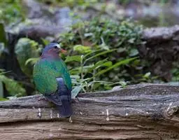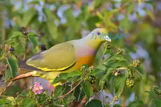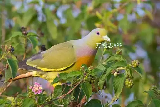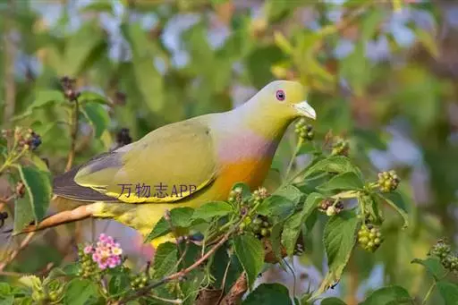 橙胸绿鸠主要为留鸟,通常单独或成5—6只的小群活动,有时也与其他鸟类混群活动。早晨和傍晚活动最为频繁。喜欢栖息于枯立的树顶枝上。叫声为美妙抑扬的口哨声。主要以榕树果实为食,也吃其他植物的果实与种子。
