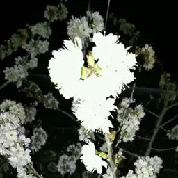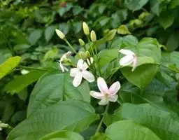 花灰绿。色,下垂,芳香,密被灰白色星状绒毛;常1-3(-5)花簇生幼枝叶腋;花梗被星状柔毛,长3-4毫米;萼筒钟状,长5毫米,在子房上骤收缩,裂片近三角形或近披针形,长3.5-4毫米,顶端渐尖或钝尖,内面疏生白色星状柔毛,包围子房的萼管短矩圆形或近球形,被星状绒毛和鳞片,具明显的8肋;雄蕊4,花药椭圆形,长1.6毫米;花柱直立,上部稍弯曲,下部密生绒毛。果实近圆形或阔椭圆形,长13毫米,具明显的8棱脊,翅状,果肉棉质;果核纺锤形,栗褐色,内面具丝状棉毛;子叶肥厚,含丰富的油脂。花期4-5月,果期8-9 月。