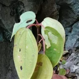 叶纸质,稀膜质,卵形或卵状椭圆形,长6-9 (-15 )厘米,宽3-6(-11)厘米,顶端钝尖,基部钝形或圆形,上面深绿色。散生少数星状柔毛,下面灰绿色,密被淡灰白色星状绒毛,侧脉6-10对,上面凹下,下面凸起;叶柄半圆形,长6-10(-15)毫米。