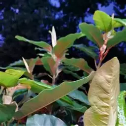 荷花木兰,木兰科北美木兰属常绿灌木或乔木。叶子椭圆形或倒卵形,前端尖,叶面深绿色,边缘没有锯齿,…