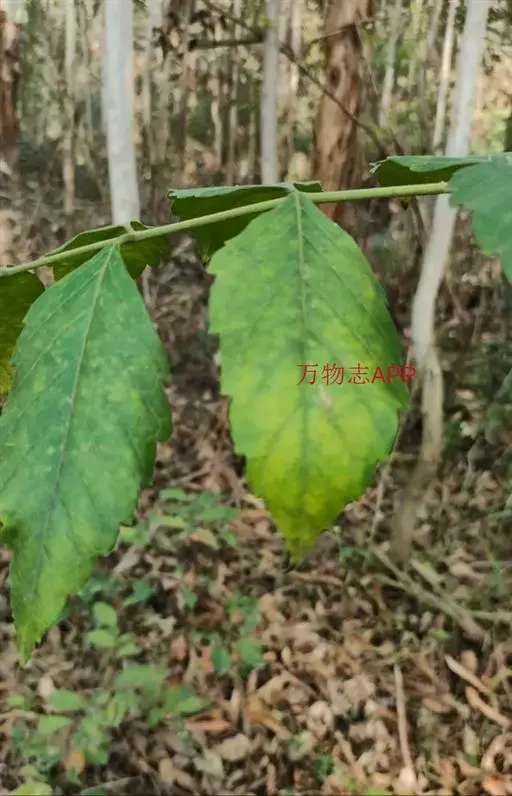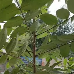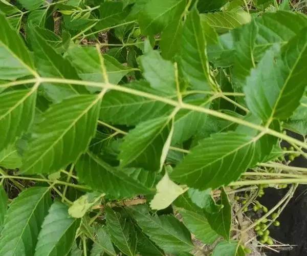 小叶3-15对,卵形或卵状披针形,长5-10(-13)厘米,先端渐尖,基部宽楔形或近圆,有粗齿,两面被柔毛,下面较密;小叶柄长4-8毫米。雄花序长15-25(-40)厘米,雌花序长约雄花序一半。
