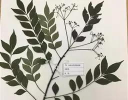 灌木或小乔木;嫩枝、叶柄和花序均被黄色柔毛。叶长20-40厘米,有小叶3-15;小叶卵形或卵状披针形,长5-10(-13)厘米,宽2.5-5(-6.5)厘米,先端渐尖,基部宽楔形至近圆形,通常略偏斜,边缘有粗齿,两面均被柔毛,背面较密;小叶柄短,长4-8毫米。花组成圆锥花序,雄花序长15-25(-40)厘米,雌花序长约为雄花序的一半;花细小,暗紫色,直径1.5-2毫米;雄花的花梗细弱,长约3毫米,萼片被微柔毛,长0.5-1毫米,宽0.3-0.5毫米;花瓣有稀疏的微柔毛或近于无毛,长1-2毫米,宽0.5-1毫米;花丝钻状,长0.6毫米,花药长0.4毫米;雌花的花梗长约2.5毫米,萼片与花瓣与雄花同,雄蕊退化或仅有痕迹。核果1-4,分离,长卵形,长6-8毫米,直径4-6毫米,成熟时灰黑色,干后有不规则多角形网纹,外壳硬骨质而脆,种仁黄白色,卵形,有薄膜,含油丰富,味极苦。花期夏季,果期8-10月。 植物标本