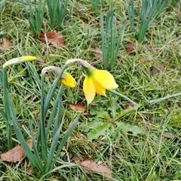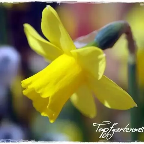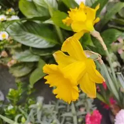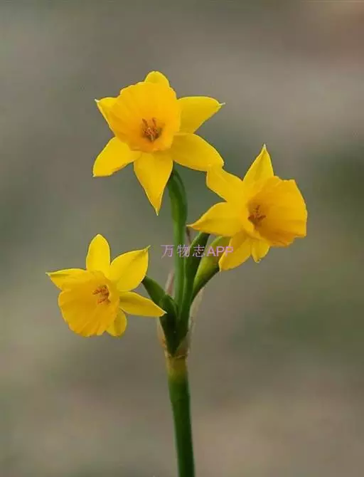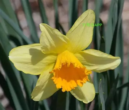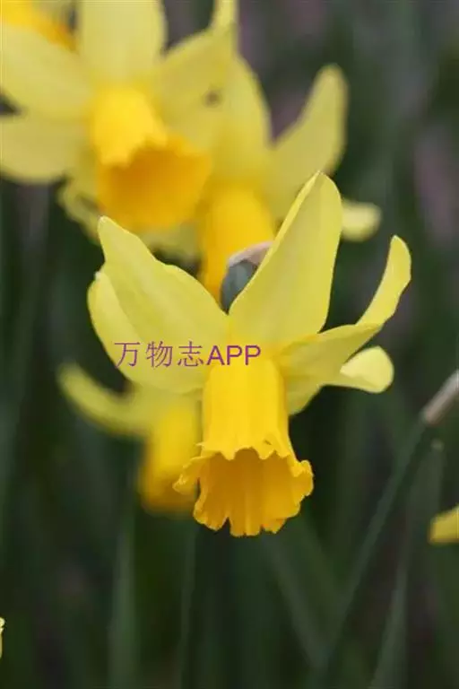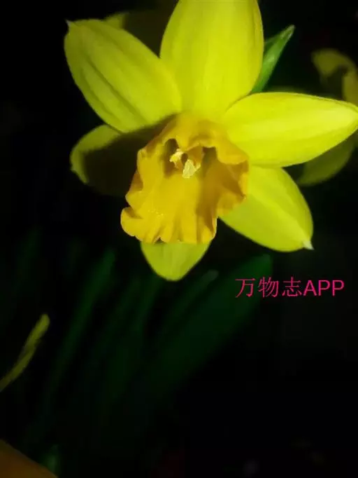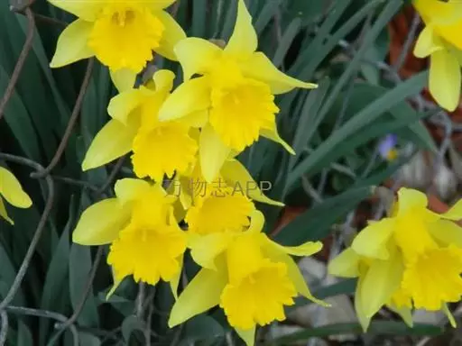 黄水仙(学名:Narcissus pseudonarcissus L.):又名洋水仙、喇叭水仙等,石蒜科多年生草本。鳞茎球形;叶直立向上,宽线形,钝头。花茎高约30厘米,顶端生花;佛焰苞状;花被管倒圆锥形,花被裂片长圆形,淡黄色;副花冠稍短于花被或近等长。花期春季。