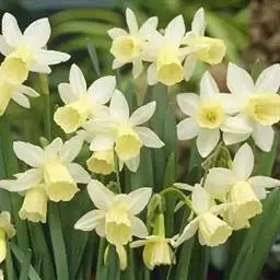 单瓣白花的有克拉奇福特、花汞,副冠橙色;天竺葵,副冠橙色,多头;酒杯,副冠黄色;轰动荷兰,副冠黄色;冰冬青,副冠黄色;约翰斯特劳斯,副冠橙红色;胡尼坦,副冠橙红色;朱尔斯维恩,副冠白色;拉斯维加斯,副冠黄色;胡德山,全白;白纸,全白,多头;爱因斯坦教授,副冠橙色;红山,副冠红色;莎乐美,副冠红色;托波利诺,副冠黄色,多头。