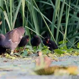 黑水鸡:是鹤形目、秧鸡科的鸟类,共有12个亚种。中型涉禽,体长24-35厘米。嘴长度适中,…