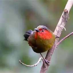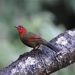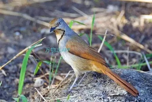 红翅薮鹛是噪眉科、薮鹛属中型鸟类,体长21-24厘米。头顶灰褐色,头侧和颈侧赤红色,上体橄榄褐色,…